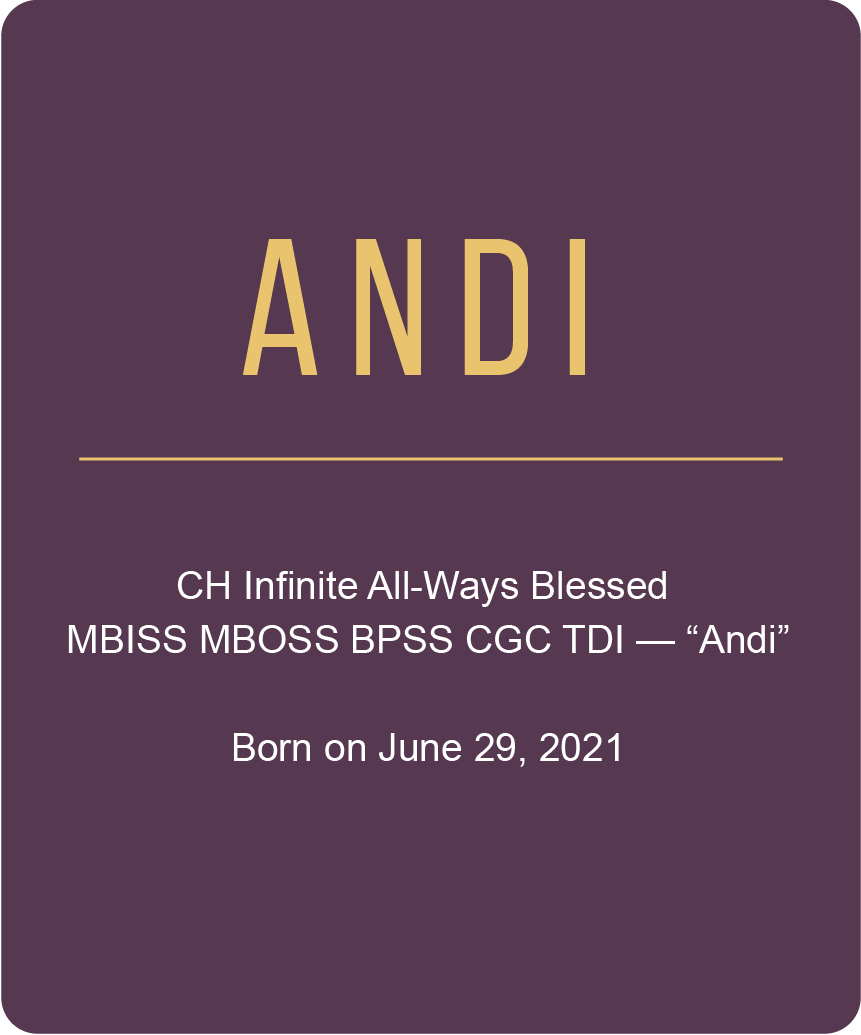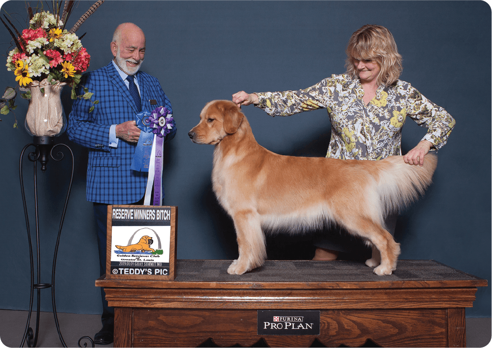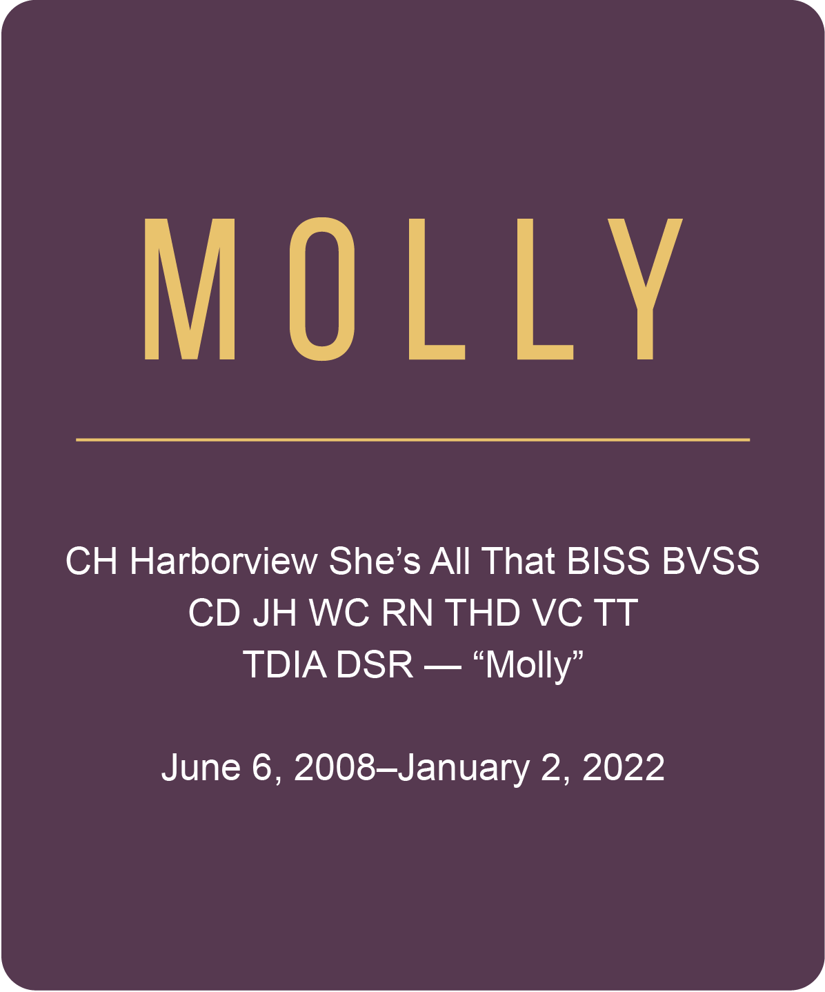 Molly was a very pretty girl with many great attributes. She had a rock-solid temperament and was sweet as can be. She had correct structure with a beautiful front assembly and topline as well as a gorgeous headpiece and adorable expression. She was a moderate bitch.