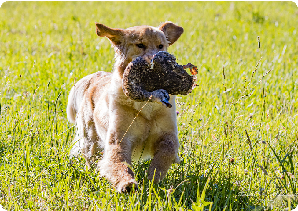 He had a job here at Infinite Goldens as chief puppy trainer. He loved the puppies and had a magical way of getting them to be just as calm and well behaved as himself. They would mimic what they saw him doing.