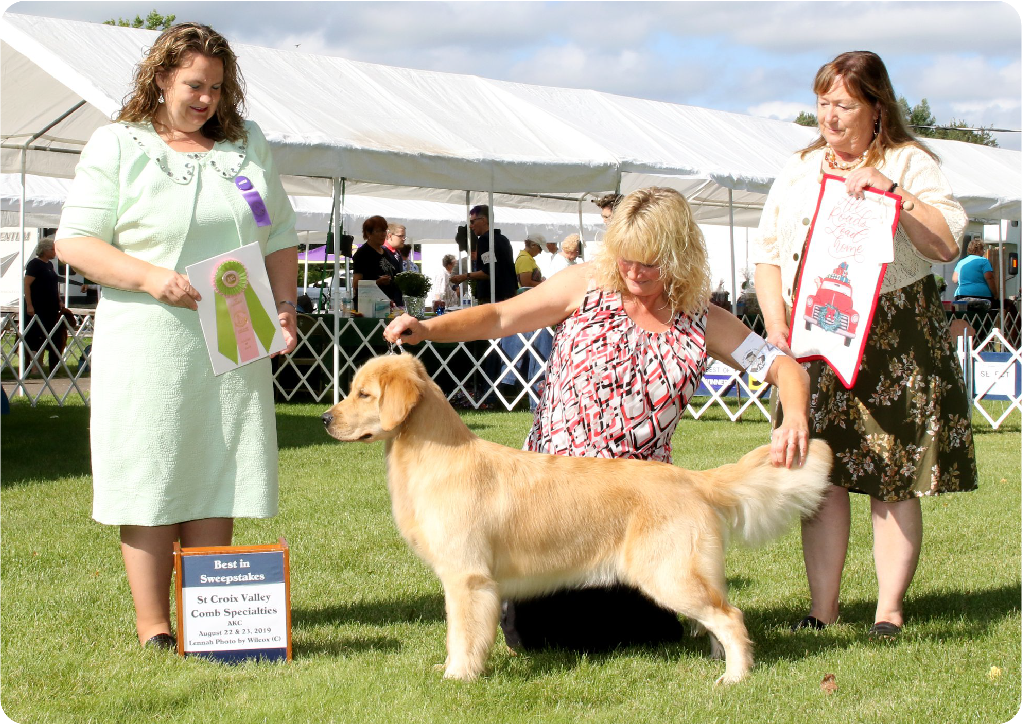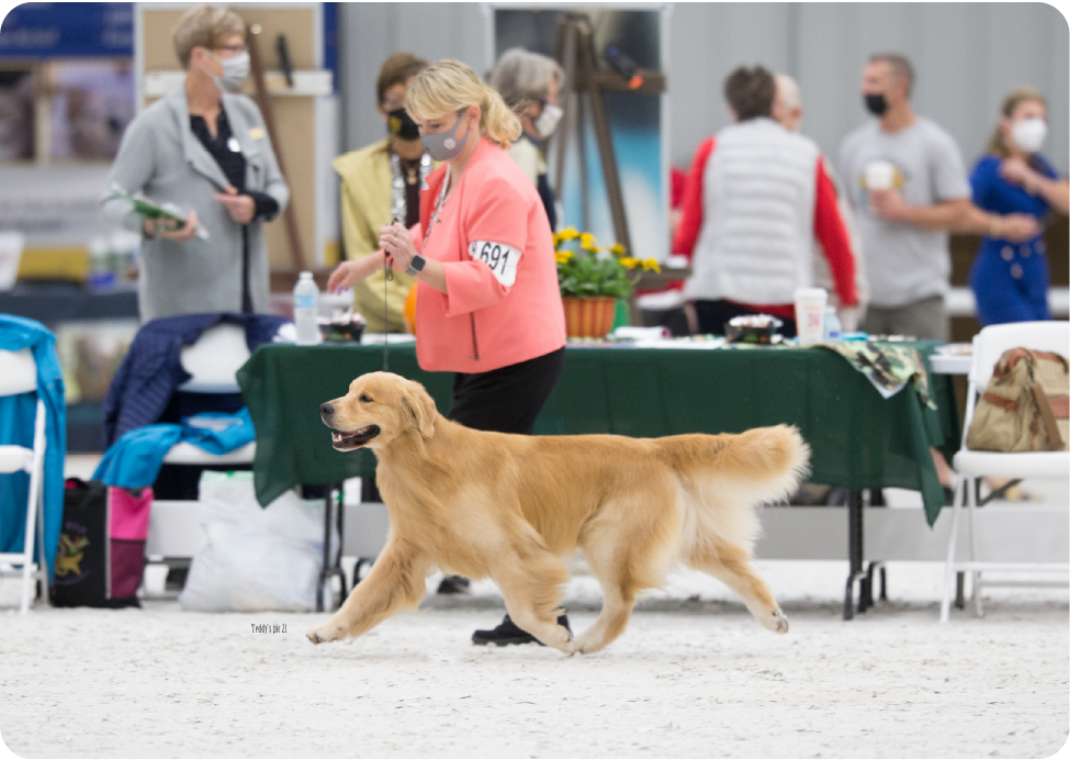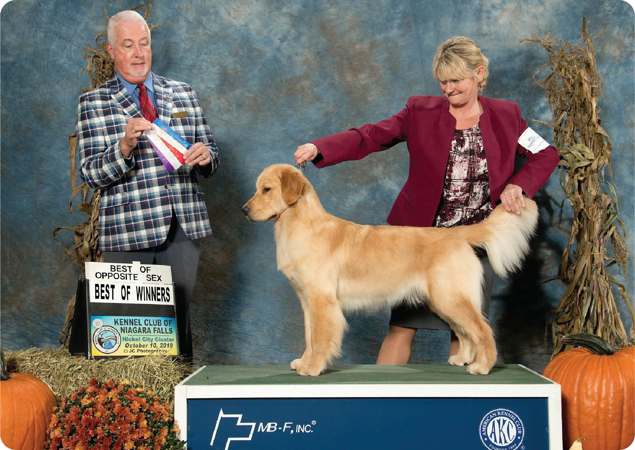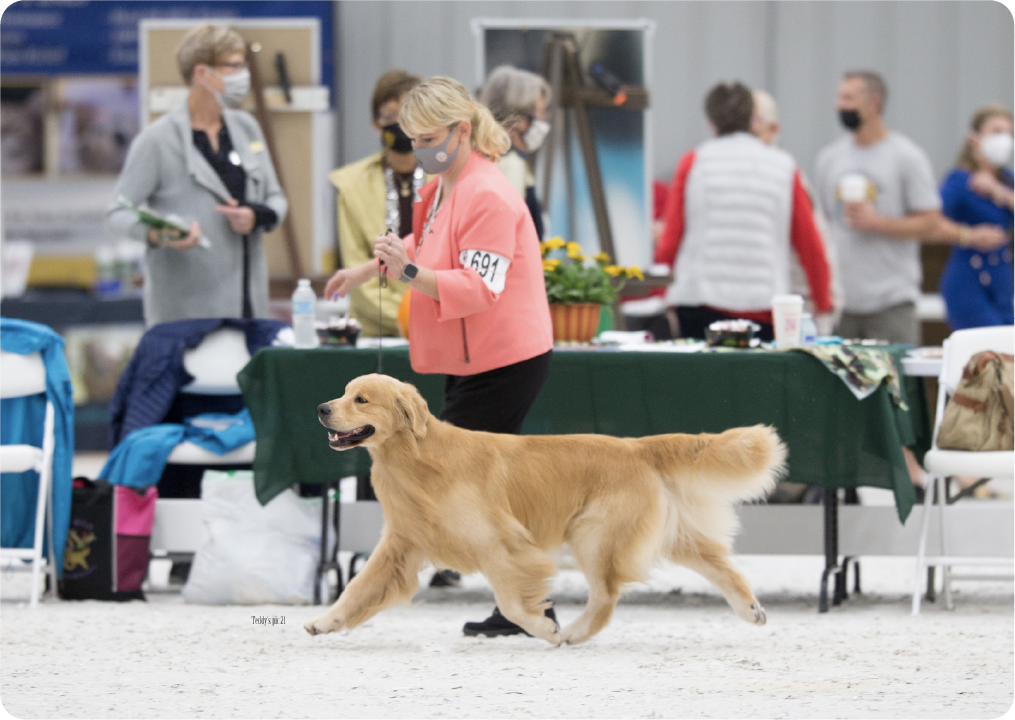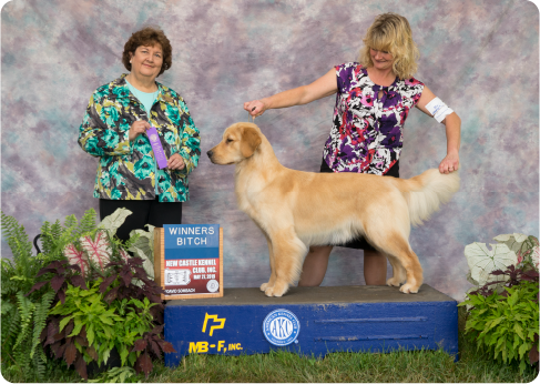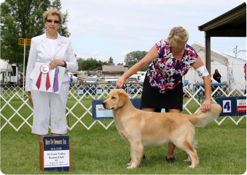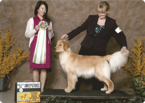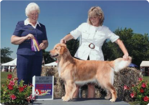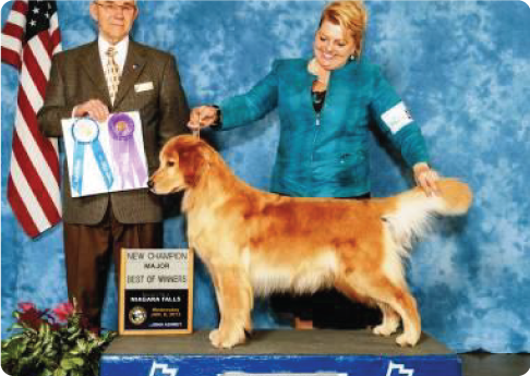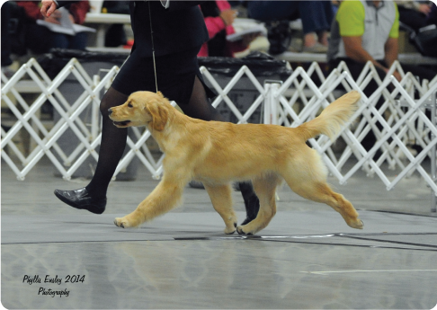 Molly was owner-handled to all of her single CH points & picked up a Best in Sweeps along the way. She took time off to have a litter in Feb 2012 and came back to win two 4point majors to finish her championship in Jan 2013 with handler Beth Johnson.