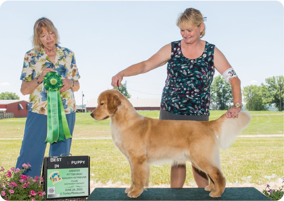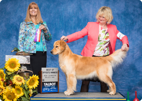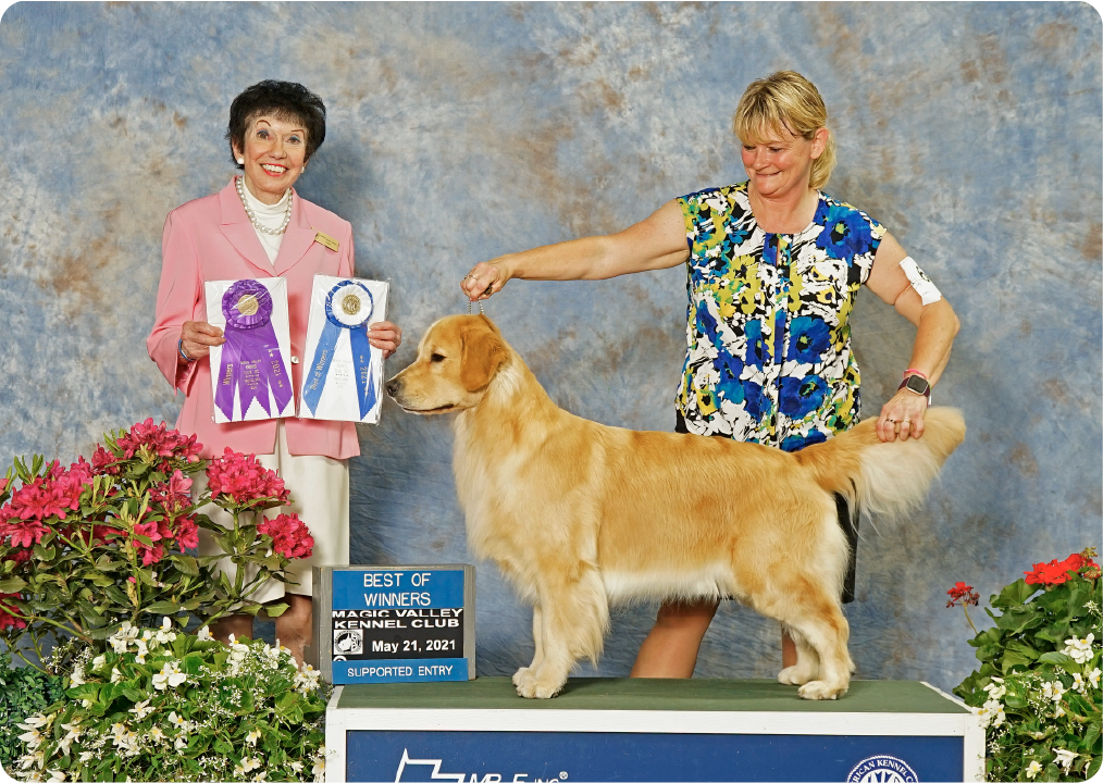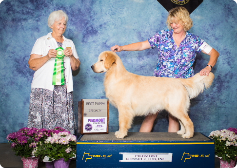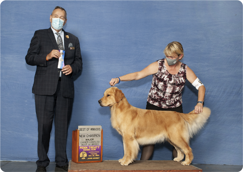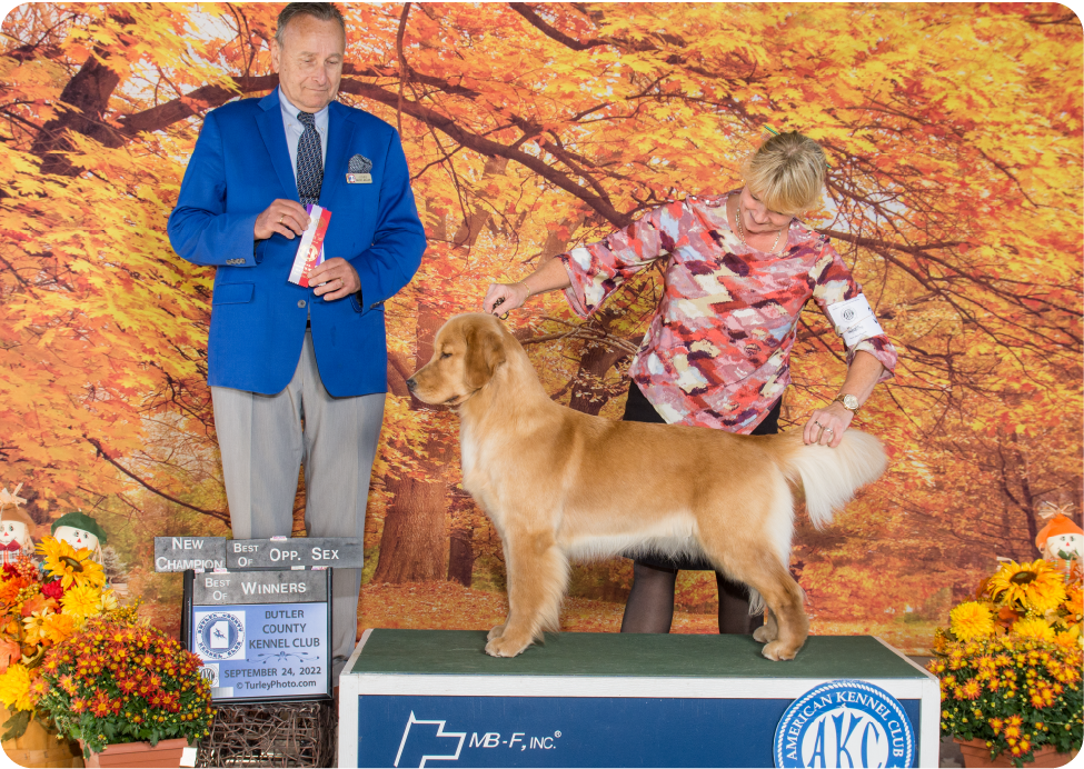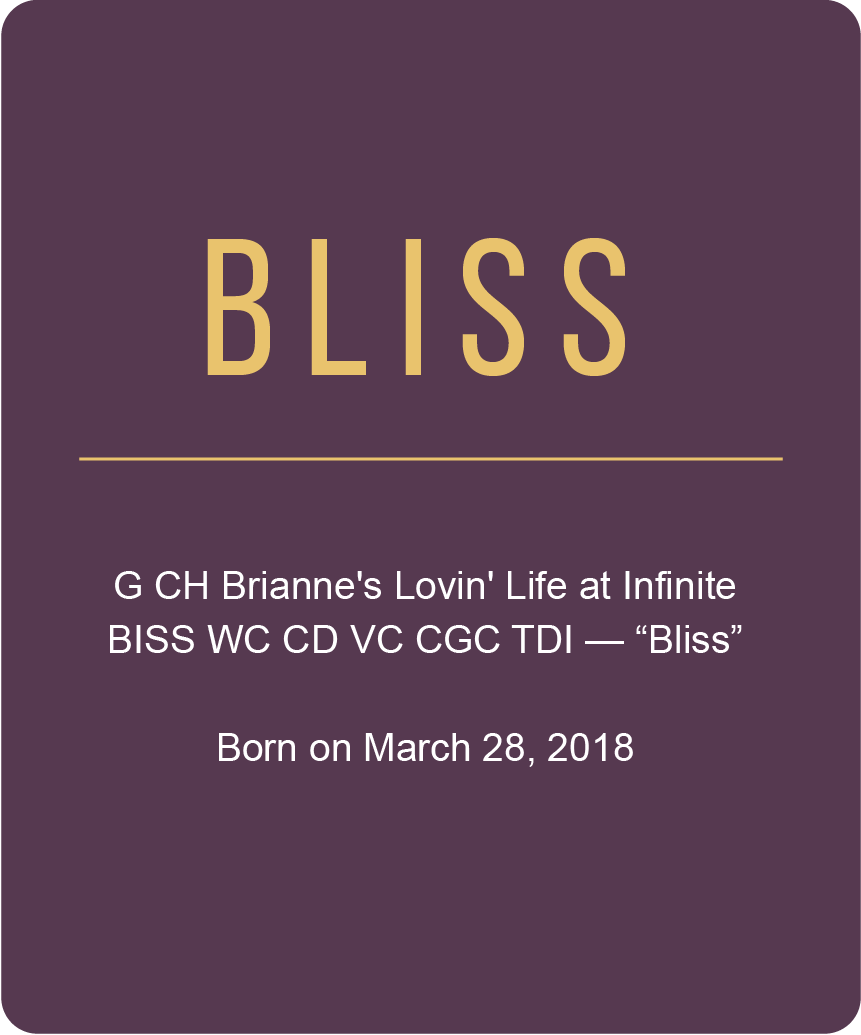 Molly was owner-handled to all of her single CH points & picked up a Best in Sweeps along the way. She took time off to have a litter in Feb 2012 and came back to win two 4point majors to finish her championship in Jan 2013 with handler Beth Johnson.