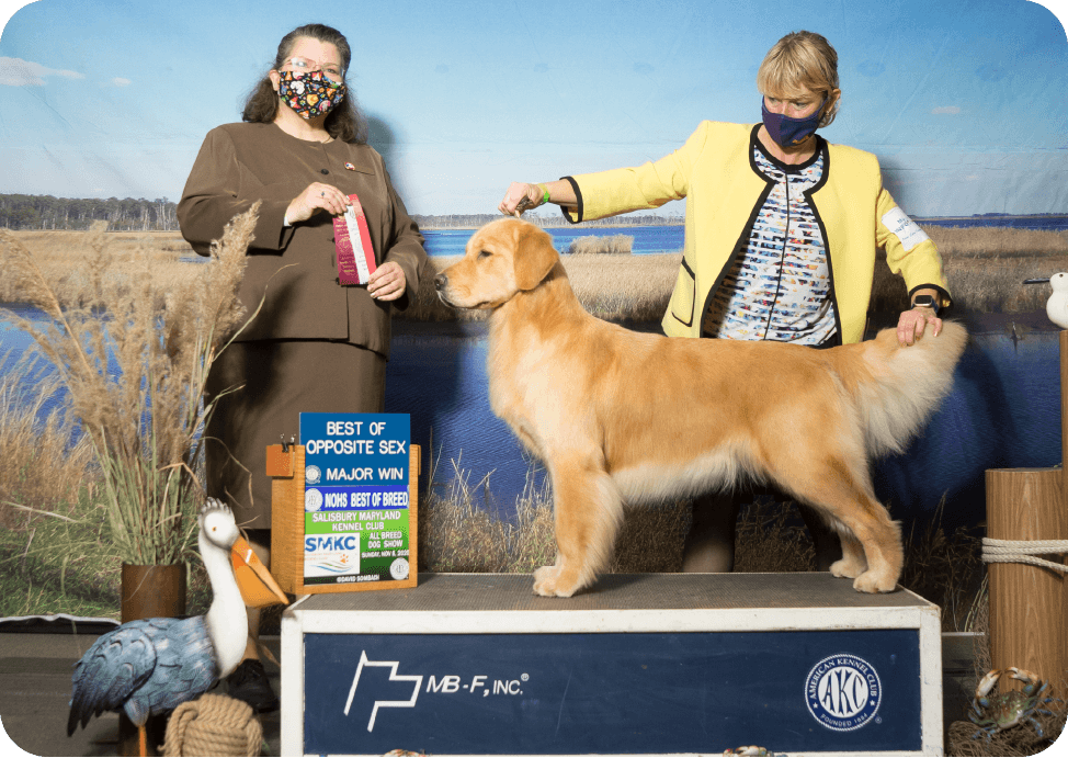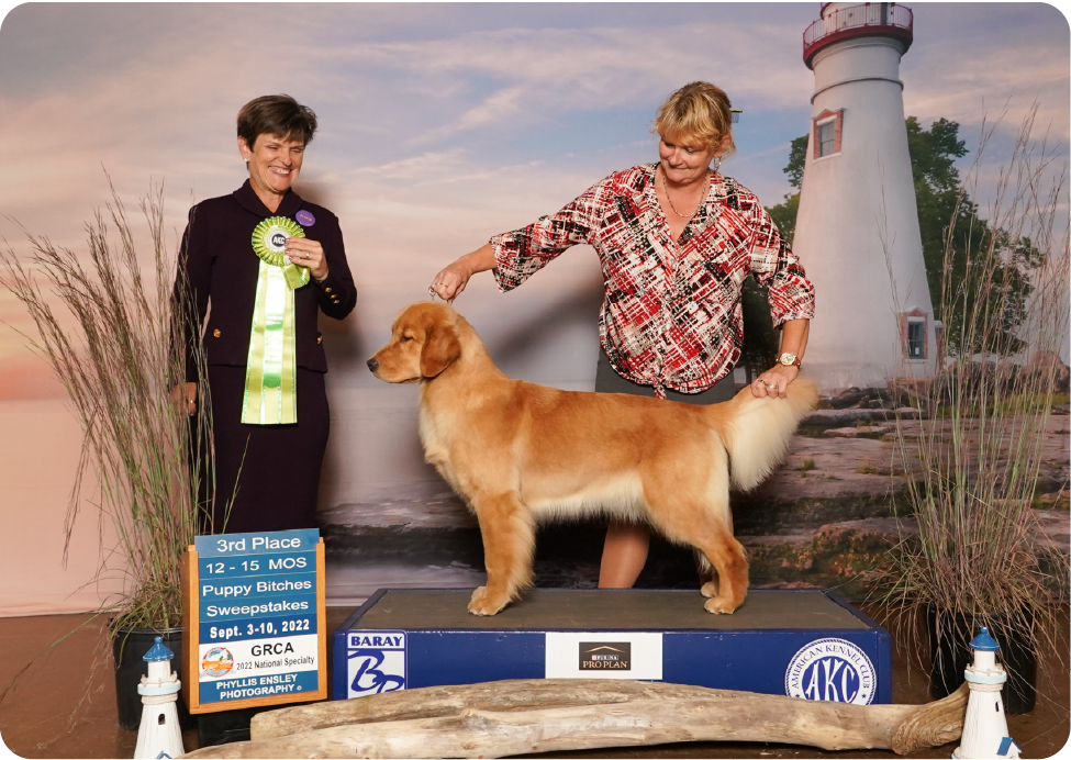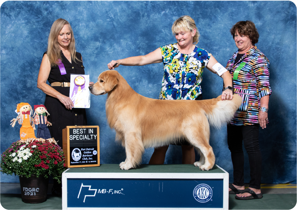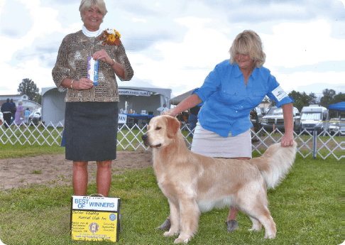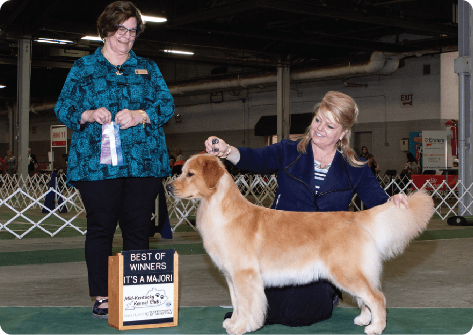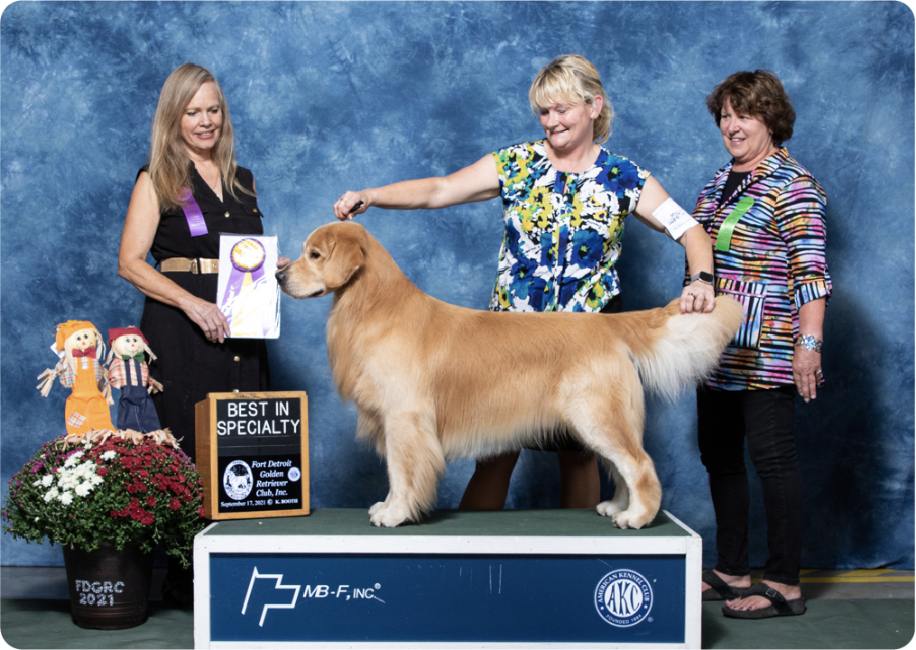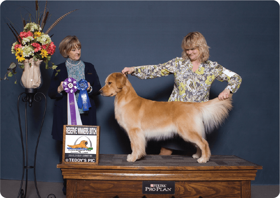 Molly was owner-handled to all of her single CH points & picked up a Best in Sweeps along the way. She took time off to have a litter in Feb 2012 and came back to win two 4point majors to finish her championship in Jan 2013 with handler Beth Johnson.