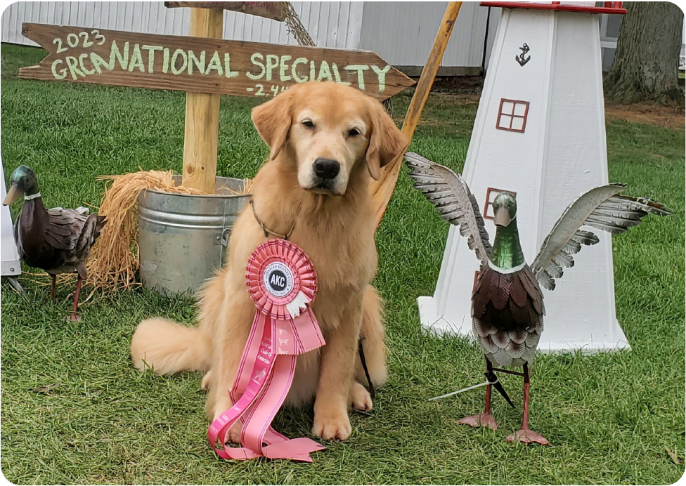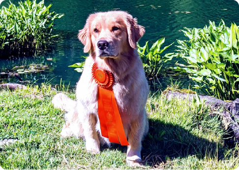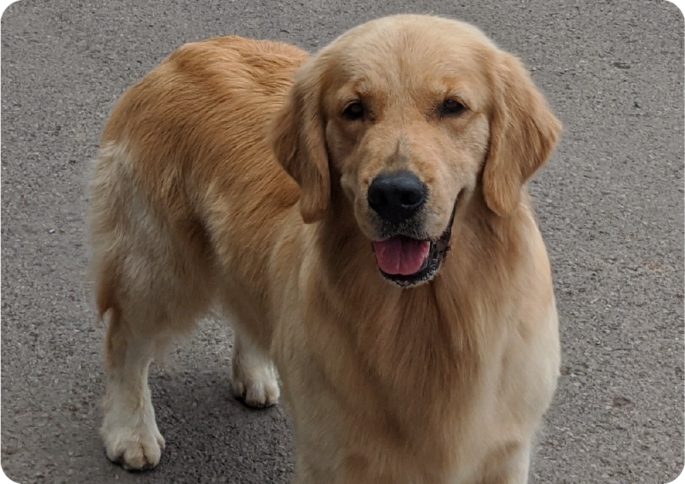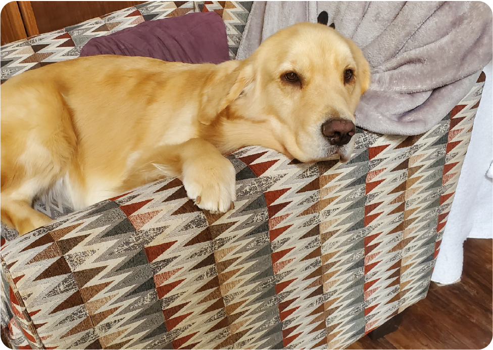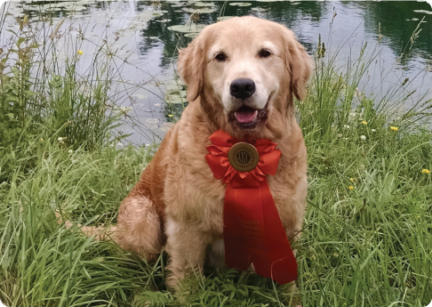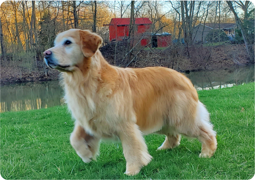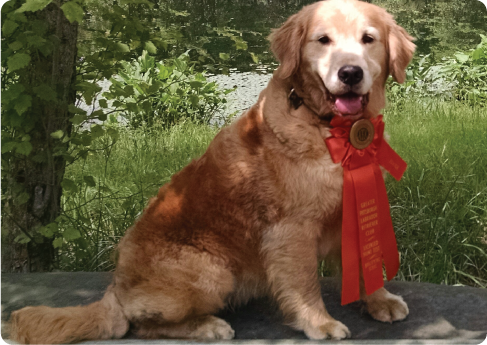 Porter came to me from the late Barbara Dismukes of the iconic Hunts Goldens. Porter was a great boy who was about the most laid-back dog in the world! He was just like having a live stuffed animal!! Porter a therapy dog and enjoyed lying on the couch.