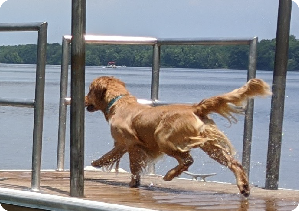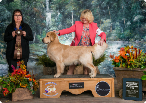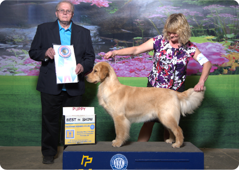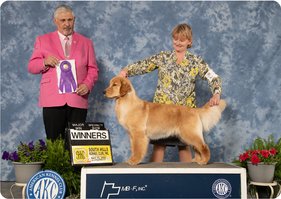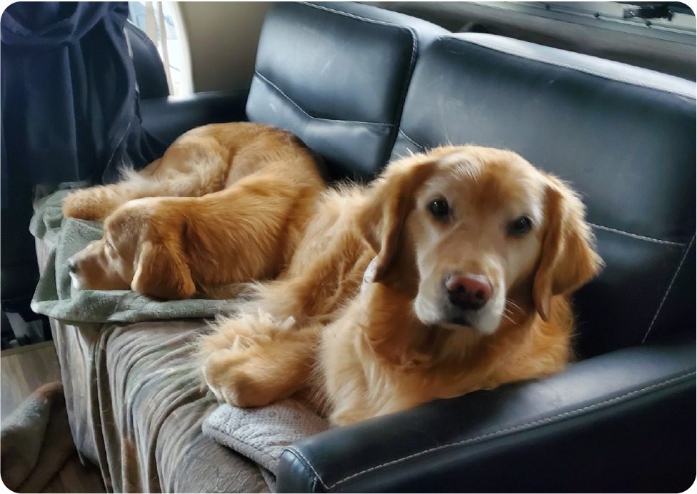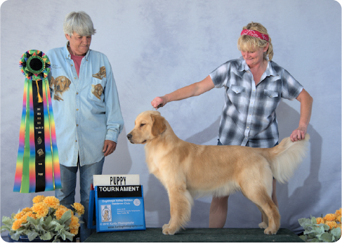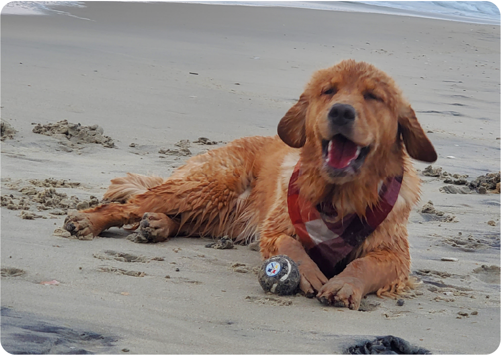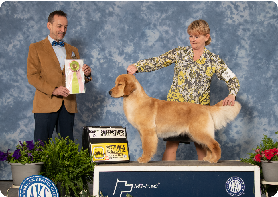 Porter came to me from the late Barbara Dismukes of the iconic Hunts Goldens. Porter was a great boy who was about the most laid-back dog in the world! He was just like having a live stuffed animal!! Porter a therapy dog and enjoyed lying on the couch.