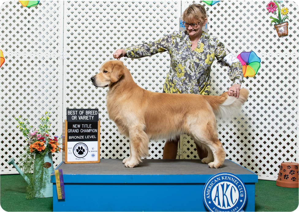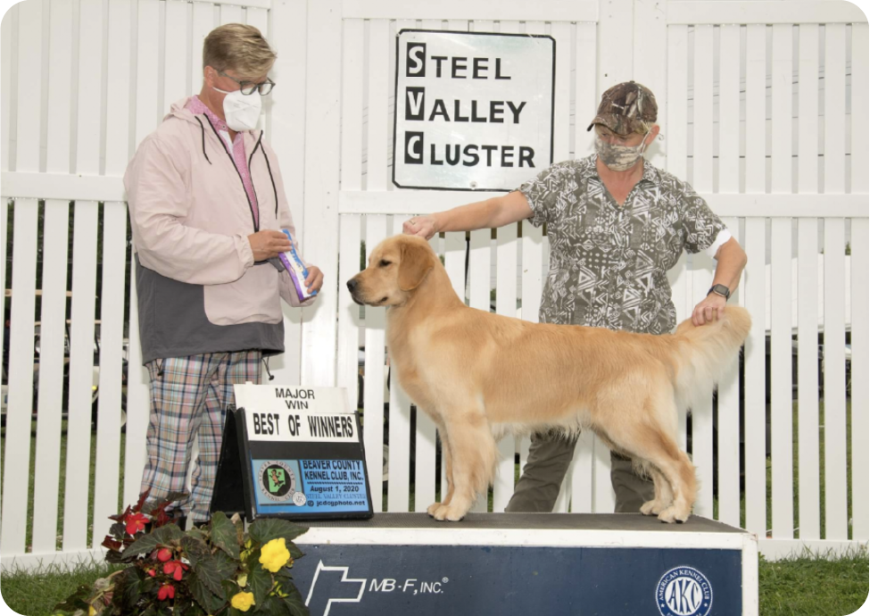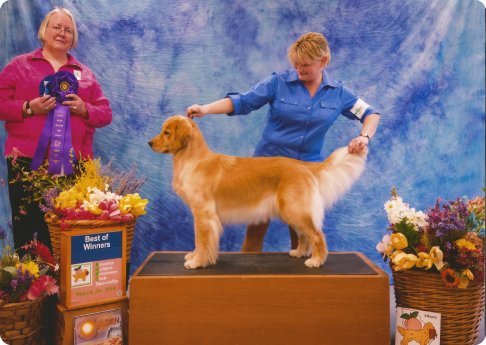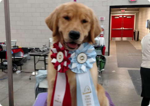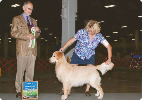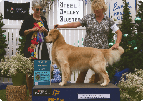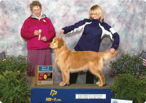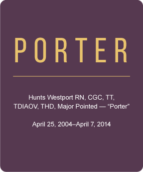 Porter was shown briefly by Sheri, at the time, very inexperienced new handler. He won 6 points towards his Am Championship, including a specialty 4 point major at the Cuyahoga GRC show Aug, 2006. Porter was retired from showing as Sheri had to take time away for family responsibilities. Also he didn’t enjoy showing and we didn’t want to make him do it.
